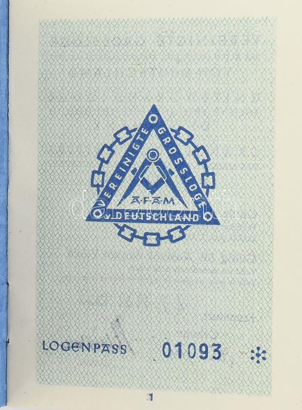 1953 Német szabadkőműves igazolvány / German freemason id https://www.darabanth.com/de/485-Fernauktion/485.0/Kunst-Dokumente-andere-Sammelgebiete/Dokument~305/1953-Nemet-szabadkomuves-igazolvany-German-freemason-id~II3322163