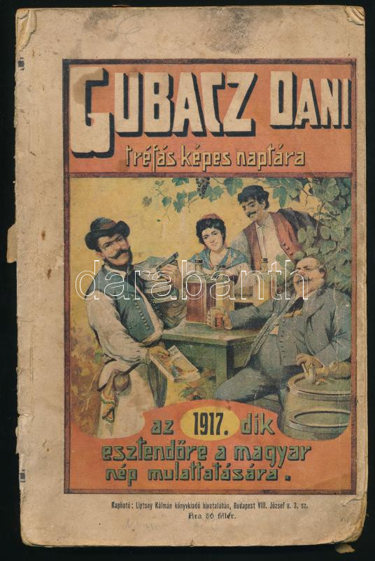 1917 Gubacz Dani tréfás képes naptára, foltos, hátsó lapok alja vágott https://www.darabanth.com/de/485-Fernauktion/485.0/Kunst-Dokumente-andere-Sammelgebiete/Drucksachen~2000029/1917-Gubacz-Dani-trefas-kepes-naptara-foltos-hatso-lapok-alja-vagott~II3287734