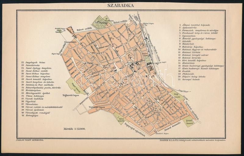 Beschreibung: cca 1900 Szabadka város térképe, Pallas Nagy Lexikona, Bp., Posner, 12,5x20,5 cm