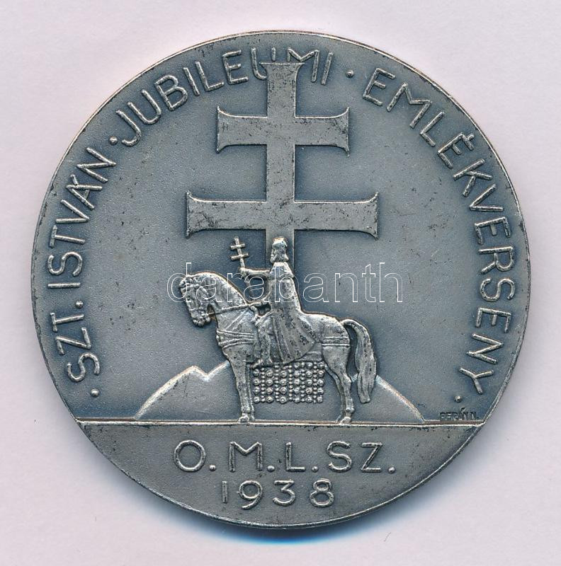 Reményi József (1887-1977) 1938. "Budapesti Polgári Lövész Egyesület 1996 / Szent István Jubileumi Emlékverseny" ezüstözött fém emlékérem "BERÁN N" gyártó jelzéssel (46mm) T:AU patina