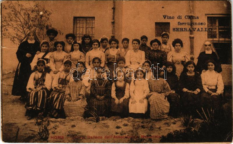 Homs, Scuola Italiana dell'Associazione Nazionale, Vino di China ferruginoso Serravallo. A. Scrocchi / Italian School in Syria, with the advertisement of Serravallo Vino di China ferruginoso (fa)