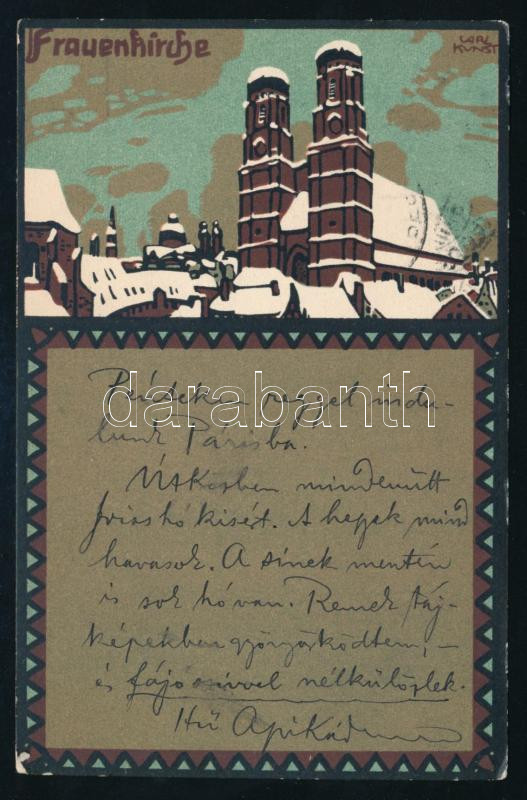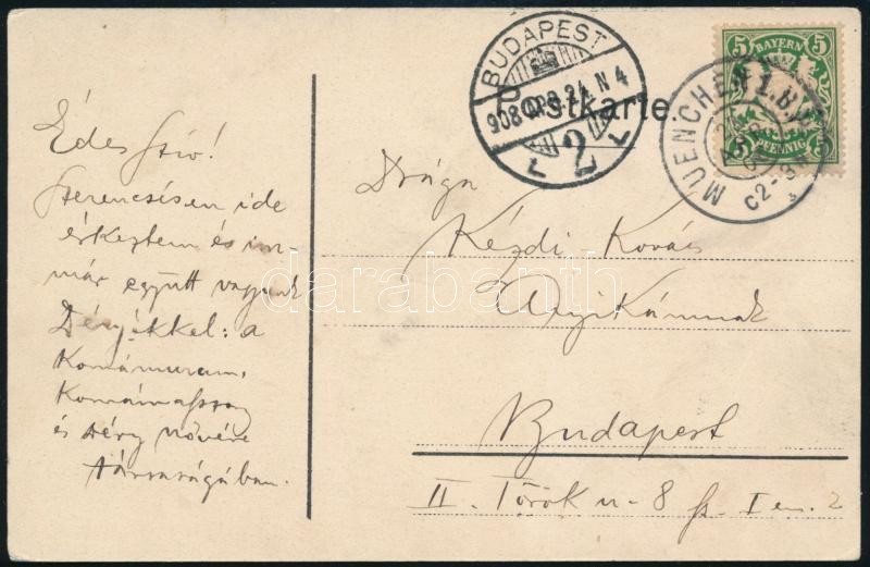 Beschreibung: 1908 Kézdi-Kovács László (1864-1942) festőművész, műkritikus személyes hangvételű autográf sorai képeslapon
