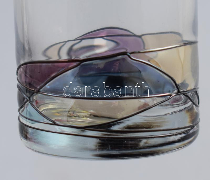 Beschreibung: Kézzel festett üveg edény, fedéllel, formába fújt, hibátlan 14 cm