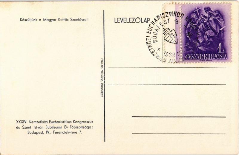 1938 Budapest XXXIV. Nemzetközi Eucharisztikus Kongresszus. Készüljünk a Magyar Kettős Szentévre! Heylen Tamás Lajos namuri püspök, a Nemzetközi Eucharisztikus Kongresszusok Állandó Bizottságának elnöke / 34th International Eucharistic Congress + "XXXIV Nemzetközi Eucharisztikus Kongresszus Budapest 1938. május 26." So. Stpl.