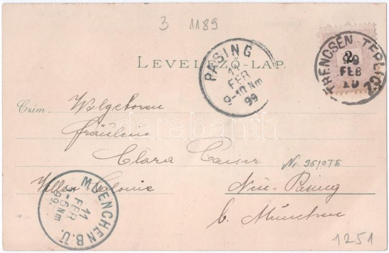 1898 (Vorläufer) Trencsénteplic, Trencianske Teplice; Sina és Háromszív ház, Villa Attila, Bartl és Turóczy. Gangel Lipót / Sina & 3 Herzen haus, villa / street view, villas. Art Nouveau, floral, litho