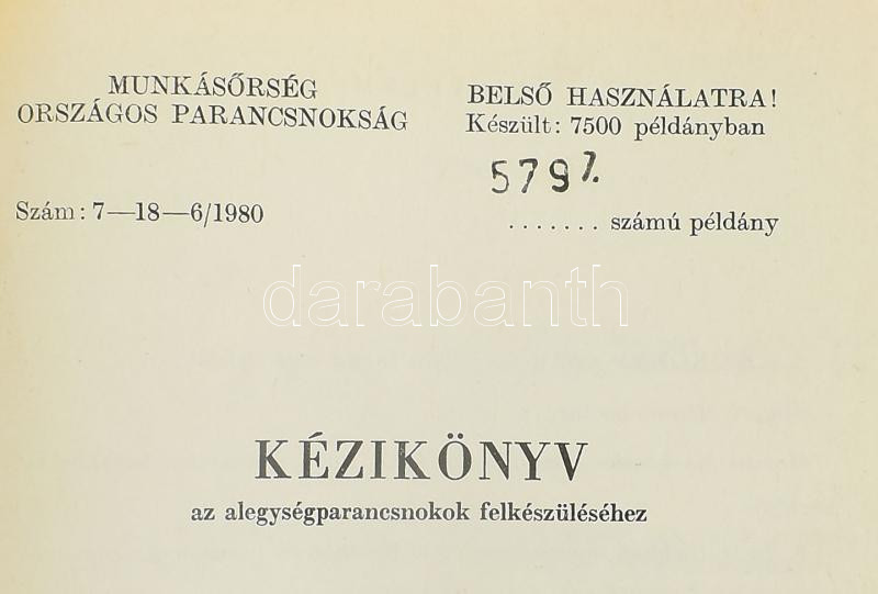 Kézikönyv alegységparancsnokok felkészüléséhez. Belső használatra. Szá... https://www.darabanth.com/de/487-Fernauktion/487.0/Bucher/Bucher-Militaria~500019/Kezikonyv-alegysegparancsnokok-felkeszulesehez-Belso-hasznalatra-Szamozott-peldany-Bp-1980-~II3332022