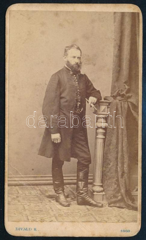 1869 Előkelő úr egészalakos portréja, vizitkártya Divald Károly eperje... https://www.darabanth.com/de/487-Fernauktion/487.0/Fotografie/Foto~2000065/1869-Elokelo-ur-egeszalakos-portreja-vizitkartya-Divald-Karoly-eperjesi-mutermebol-kisse-foltos-~II3337857