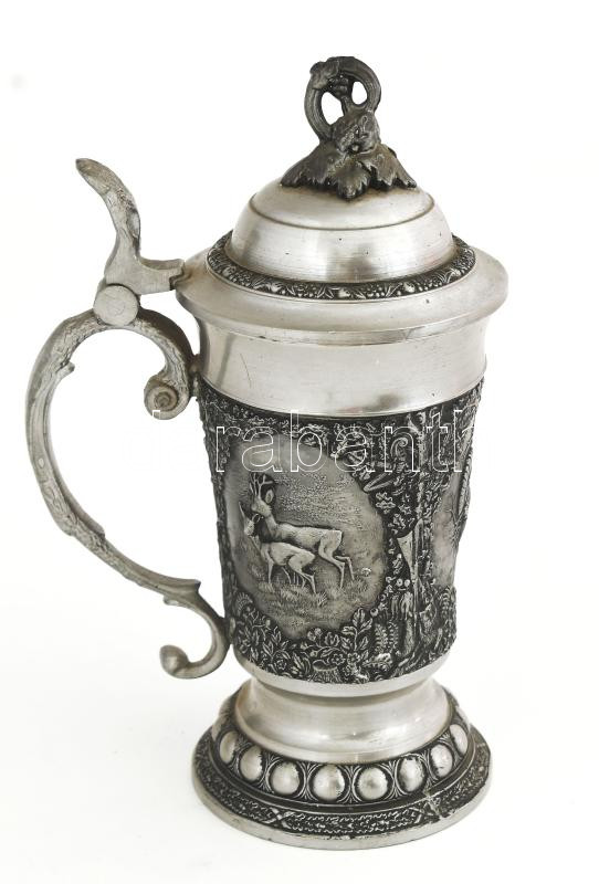 Beschreibung: Ón vadászmintás fedeles edény, jelzett, m: 19,5 cm