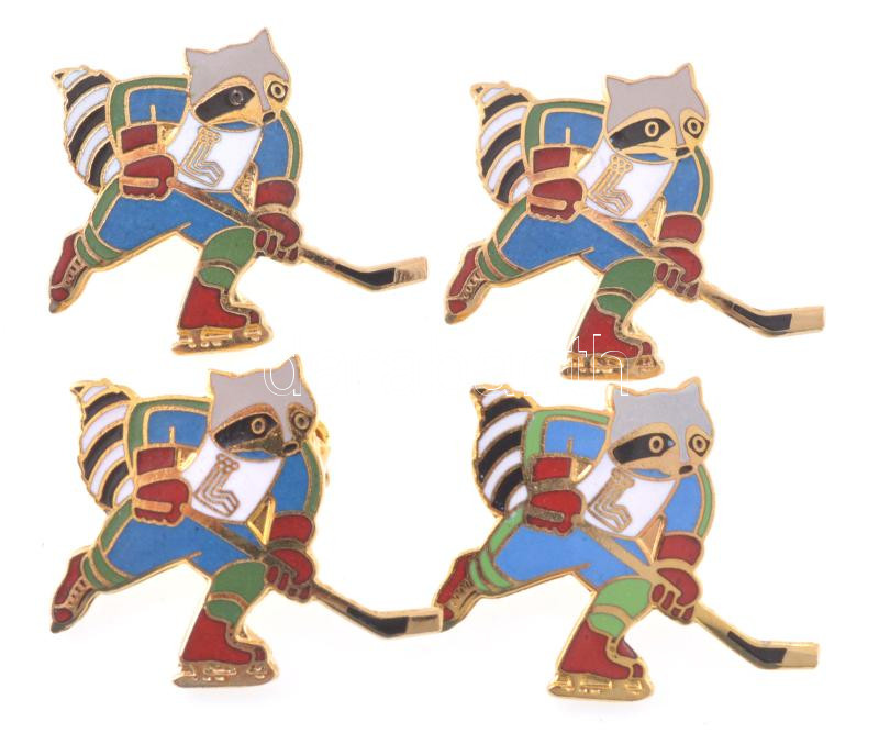 Amerikai Egyesült Államok 1980. "XIII. Téli Olimpia, Lake Placid" zománcozott fém jégkorong jelvény (4db) T:UNC,AU
