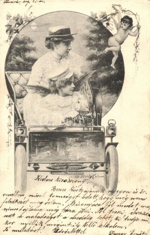 Ladies in automobile with angel. Art Nouveau s: Ch. Scolik (EK) https://www.darabanth.com/de/488-Fernauktion/488.0/Ansichtskarten/Auto~2500017/Ladies-in-automobile-with-angel-Art-Nouveau-s-Ch-Scolik-EK~II1742289