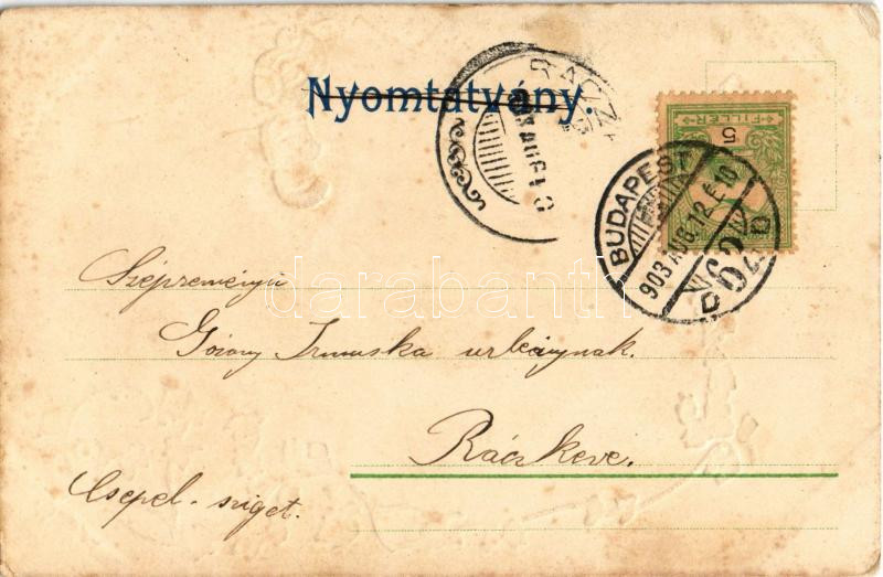 Beschreibung: 1903 Bor / Wine. Art Nouveau, floral, Emb. litho (EK)