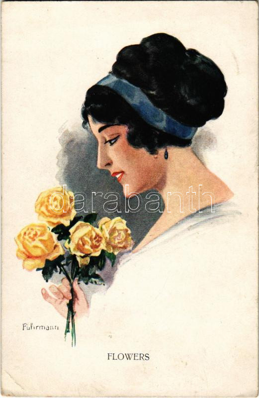 Beschreibung: 1914 "Flowers" Lady art postcard. Grüner & Simon Serie 2028/4. s: Fuhrmann (EK)