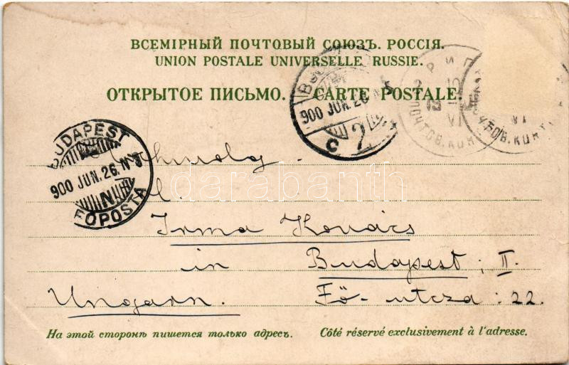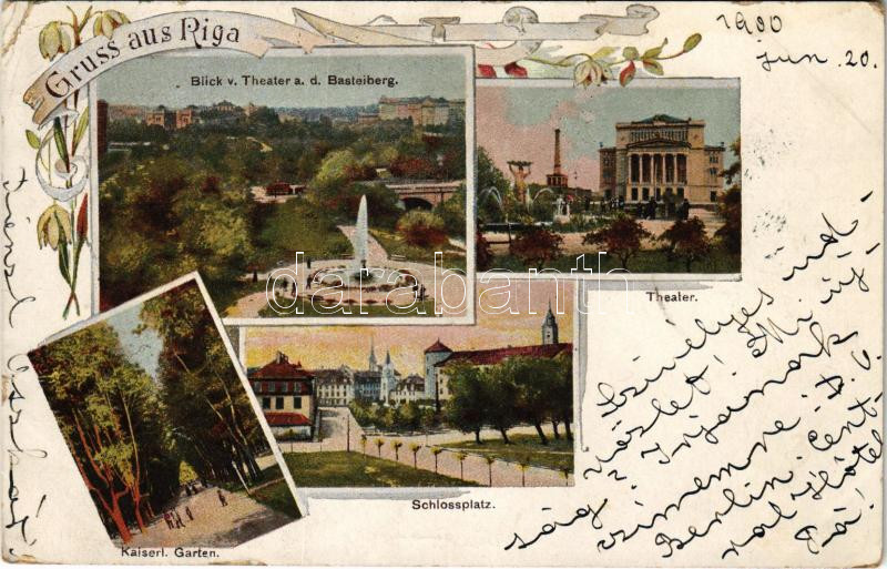 Beschreibung: 1900 Riga, Blick v. Theater a. d. Basteiberg, Theater, Kaiserl. Garden, Schlossplatz / theatre, park, square. Art Nouveau, floral (EK)