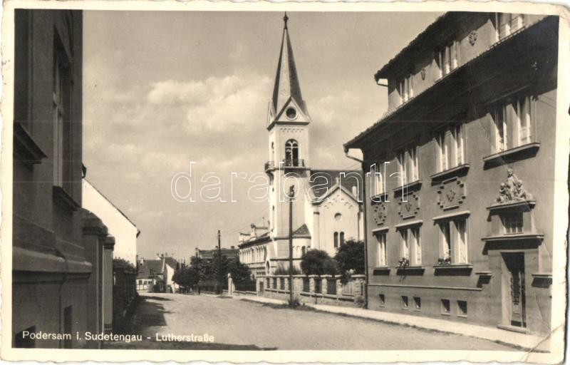 Podborany, Podersam (Sudetenland); Lutherstrasse / street view, Luther... https://www.darabanth.com/de/488-Fernauktion/488.0/Ansichtskarten/Tschechische-Republik~2500033/Podborany-Podersam-Sudetenland-Lutherstrasse-street-view-Lutheran-church-EK~II1813349