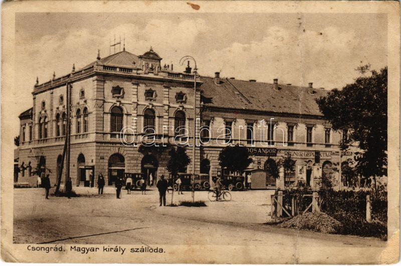 1937 Csongrád, Magyar Király szálloda, autók, Regner gépraktár, üzlete... https://www.darabanth.com/de/488-Fernauktion/488.0/Ansichtskarten/Ungarn~2500005/1937-Csongrad-Magyar-Kiraly-szalloda-autok-Regner-gepraktar-uzletek-Bozo-es-Justin-kia~II3147476