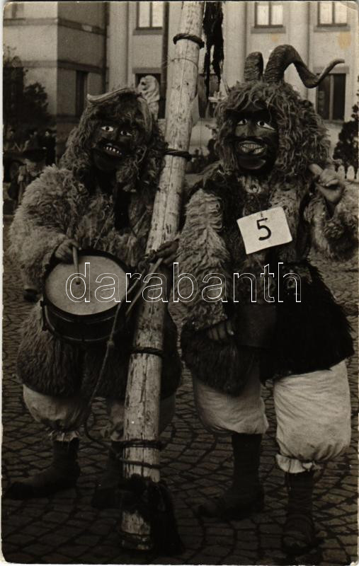 ~1940 Mohács, busójárás a városháza előtt. photo (non PC) (EK) https://www.darabanth.com/de/488-Fernauktion/488.0/Ansichtskarten/Ungarn~2500005/7E1940-Mohacs-busojaras-a-varoshaza-elott-photo-non-PC-EK~II3147363