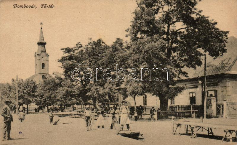 Dombóvár, Fő tér, templom (EK) https://www.darabanth.com/de/488-Fernauktion/488.0/Ansichtskarten/Ungarn~2500005/Dombovar-Fo-ter-templom-EK~II1200668