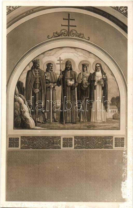Beschreibung: Eger, Az Angolkisasszonyok BMV intézete, Árpádházi Szentek csoportja s: Megyer Meyer