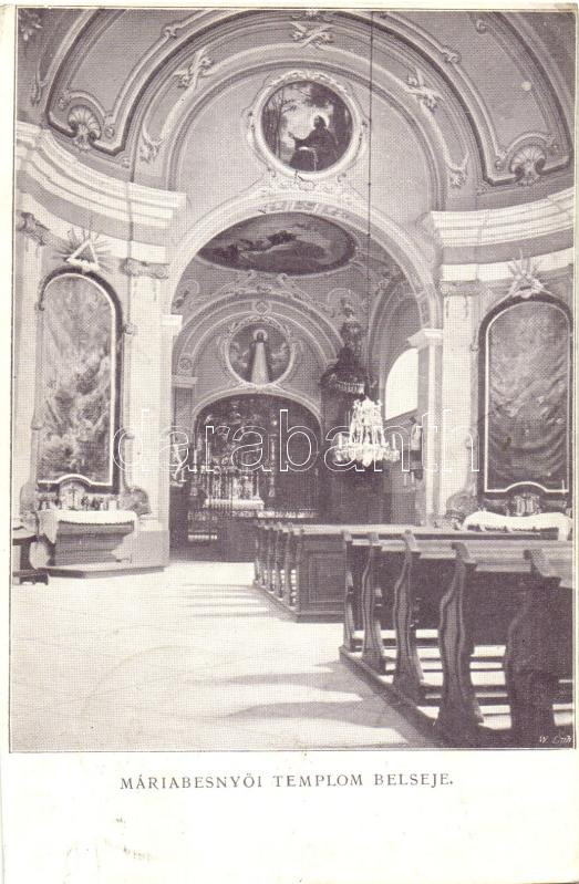 Máriabesnyő, templom, belső https://www.darabanth.com/de/488-Fernauktion/488.0/Ansichtskarten/Ungarn~2500005/Mariabesnyo-templom-belso~II1235177