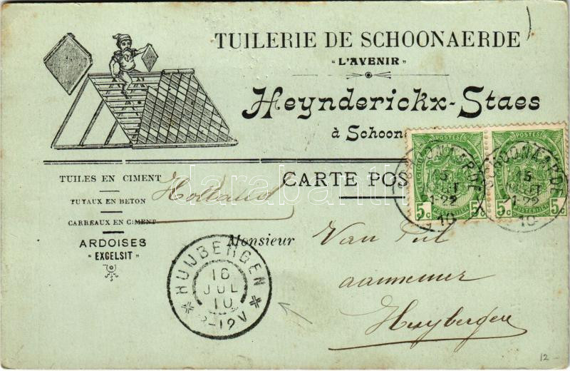 1910 Schoonaarde, Tuilerie de Schoonaerde "L'Avenir" He... https://www.darabanth.com/de/488-Fernauktion/488.0/Ansichtskarten/Werbungen~2500089/1910-Schoonaarde-Tuilerie-de-Schoonaerde-LAvenir-Heynderickx-Staes-Belgian-Tileworks-companys~II3149589