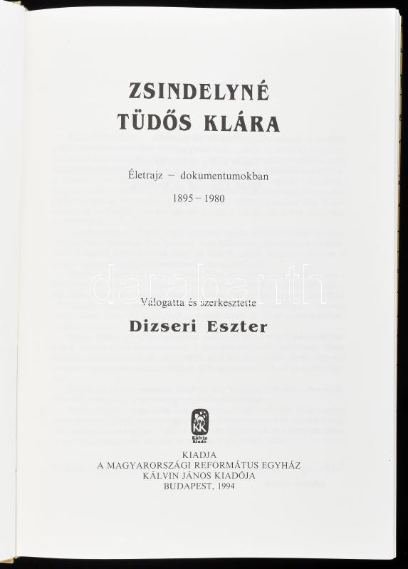 Dizseri Eszter: Zsindelyné Tüdős Klára. Életrajz - dokumentumokban. 18... https://www.darabanth.com/de/488-Fernauktion/488.0/Bucher/Bucher-Andere-kuriositaten~1000036/Dizseri-Eszter-Zsindelyne-Tudos-Klara-Eletrajz-dokumentumokban-1895-1980-Val-es-szerk~II3323261