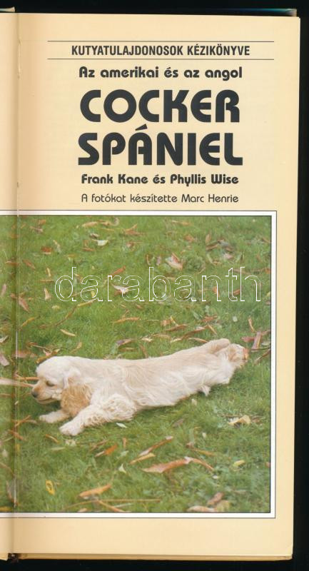 Frank Kane - Phyllis Wise: Az amerikai és az angol cocker spániel. Kutyatulajdonosok kézikönyve. Ford.: Soltész József. Bp., 1995, Pesti Szalon. Színes fotókkal illusztrálva. Kiadói kartonált papírkötés.