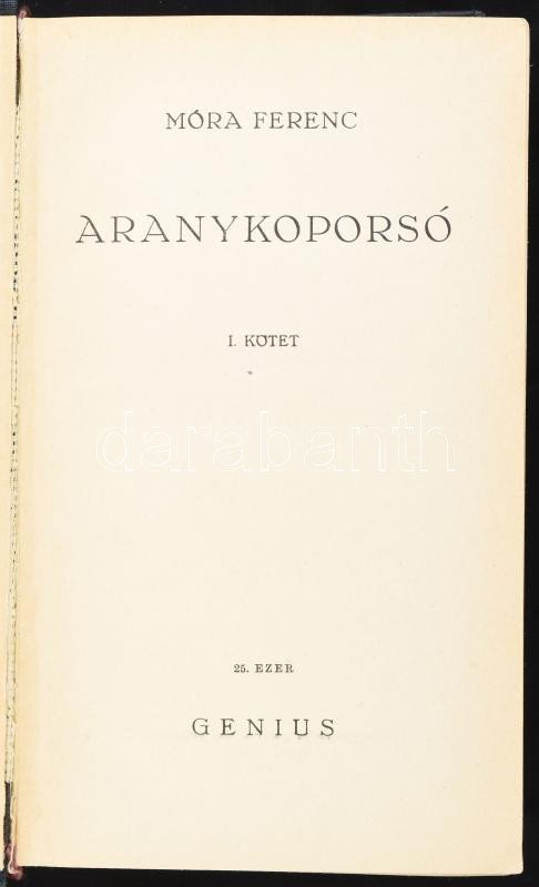Móra Ferenc: Aranykoporsó. I-II. köt. [Egy kötetben]. Bp., 1940, Geniu... https://www.darabanth.com/de/488-Fernauktion/488.0/Bucher/Bucher-Andere-kuriositaten~1000036/Mora-Ferenc-Aranykoporso-I-II-kot-Egy-kotetben-Bp-1940-Genius-278plus2-p-345plus3-p-~II3299779