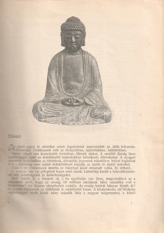 Kertész K[ároly] Róbert: Képek Ázsia keletéről. Pillanatfelvételek egy világkörüli sétáról. Két színes és két fekete melléklettel, valamint 170 szövegközti ábrával. Budapest, 1906. Pátria Irodalmi Vállalat és Nyomdai Rt. 1 t. (hártyapapírral védett színes címkép) + 208 p. + 1 t. (színes) + 2 térkép (kihajtható) + 1 melléklet (könyvjelző). Egyetlen kiadás. Kertész Károly Róbert (1876-1951) építész, építészeti író, egyetemi tanár, első távol-keleti utazására az 1900-as évek elején került sor. Úti beszámolója India, Jáva, a partvidéki Kína és Japán társadalmainak, népszokásainak, erkölcseinek és építészetének gazdag leírása, a hajóút viselkedési normarendszerének részleteivel. Néhány oldalon halvány foltosság. Fűzve, színes, illusztrált, enyhén sérült, hiányos gerincű kiadói borítóban.