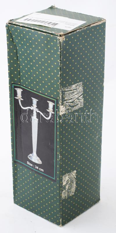 Beschreibung: Gyertyatartó, krómozott fém, eredeti dobozában 34 cm, hozzá 2x2 db gyertya