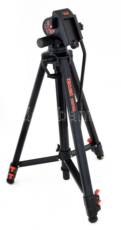 Beschreibung: Trojan Tripod kameraállvány, 3 helyen állítható, tartóban, összecsukva 65 cm