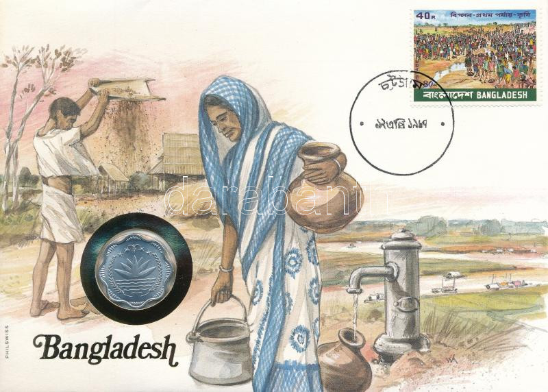 Bangladesh 1978. 10 Paisa Al-Br "FAO" coin in envelope with stamp, cancellation and a prospectus in german C:UNC patina