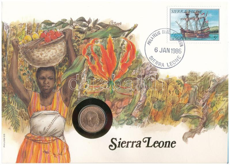 Sierra Leone 1964. 1/2 Cent bronze in envelope with stamp, cancellation, with German description C:UNC