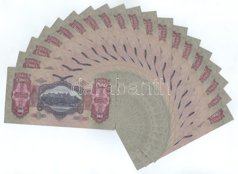 Beschreibung: 1930. 100P (19x) sorszámkövető és egyugrású bankjegy "E629 000130 - E629 000155" T:AU-XF sarokhajlások Adamo P17