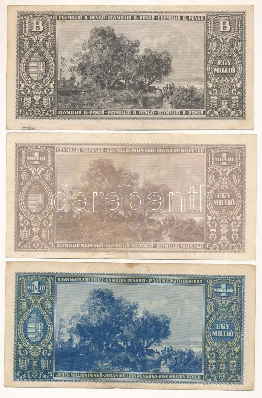 1945. 1.000.000P + 1946. 1.000.000MP + 1.000.000BP T:F, közte szép pap... https://www.darabanth.com/de/488-Fernauktion/488.0/Numismatik/Ungarische-Banknoten~500009/1945-1000000P-plus-1946-1000000MP-plus-1000000BP-TF-kozte-szep-papir~II3348215