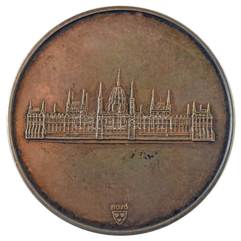 Bozó Gyula (1913-2004) DN "A Magyar Köztársaság Elnökétől / Parlament" peremén jelzett Ag emlékérem sérült dísztokban (36,13g/0.925/42mm) T:AU
