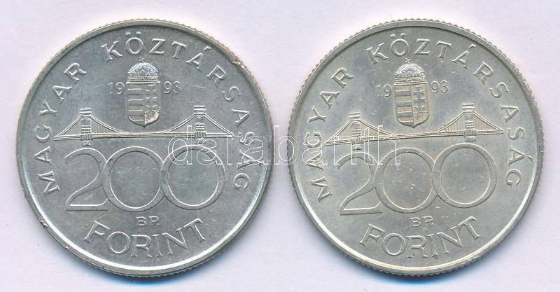 1993. 200Ft Ag "MNB" (2x) T:AU,XF patina
