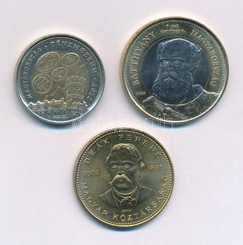 Beschreibung: 2003. 20Ft Cu-Ni-Zn "Deák" + 2022. 100Ft bimetál "Magyar Pénzmúzeum és Látogatóközpont" + 2024. 200Ft bimetál "Batthyány Lajos" T:AU-XF