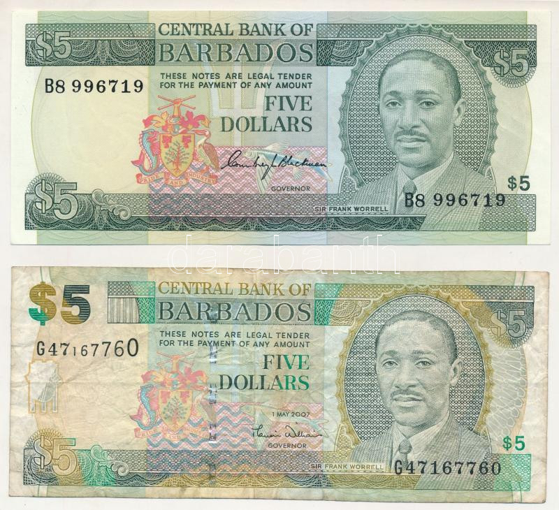 Barbados DN(1975) 5$ + 2007. 5$ T:F az egyik szép papír