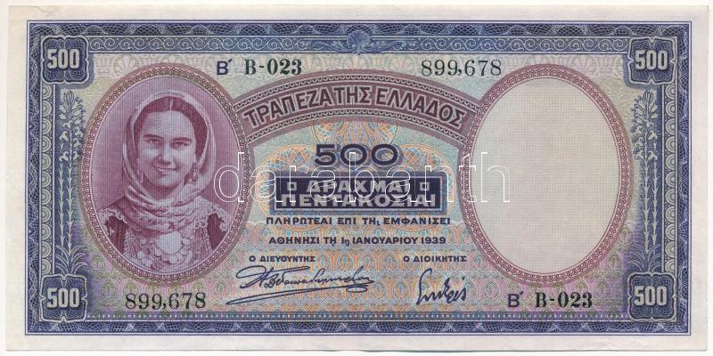 Greece 1939. 500 Drachmai C:F ... https://www.darabanth.com/de/488-Fernauktion/488.0/Numismatik/Weltweit-Banknoten~500015/Gorogorszag-1939-500Dr-TF-szep-papir3Cbr-3E-Greece-1939-500-Drachmai-CF-fine-paper3Cbr-3E-K~II3348504