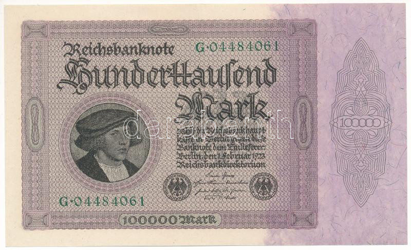 G... https://www.darabanth.com/de/488-Fernauktion/488.0/Numismatik/Weltweit-Banknoten~500015/Nemet-Birodalom-Weimari-Koztarsasag-1923-100000M-TF-szep-papir-German-Empire-Weimar-Re~II3252955