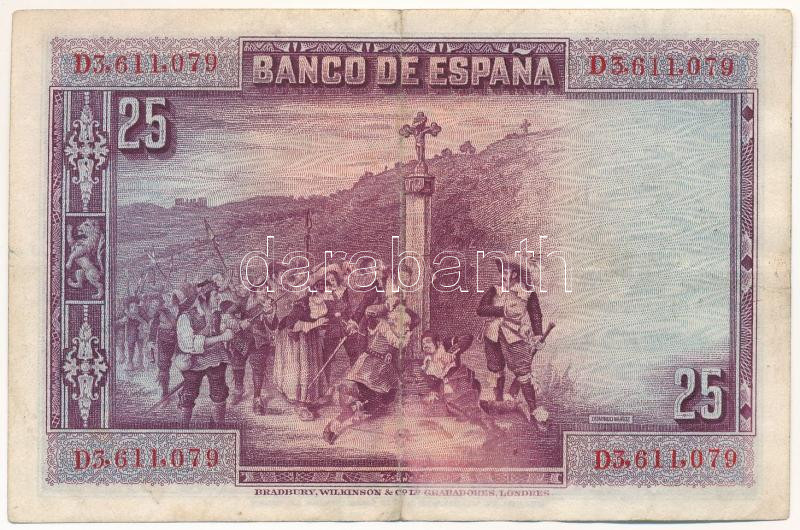 Spain 1928. 25 Pesetas C:F str... https://www.darabanth.com/de/488-Fernauktion/488.0/Numismatik/Weltweit-Banknoten~500015/Spanyolorszag-1928-25P-TF-eros-papir3Cbr-3E-Spain-1928-25-Pesetas-CF-strong-paper3Cbr-3E-Krau~II3328765