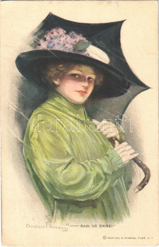 1915 "Rain or Shine!" Lady art postcard. Reinthal & Newm... https://www.darabanth.com/de/489-Fernauktion/489.0/Ansichtskarten/Kunstlerkarten~1500041/1915-Rain-or-Shine-Lady-art-postcard-Reinthal-Newman-Series-No-349-s-Clarence-F-Underwood-~II2407873