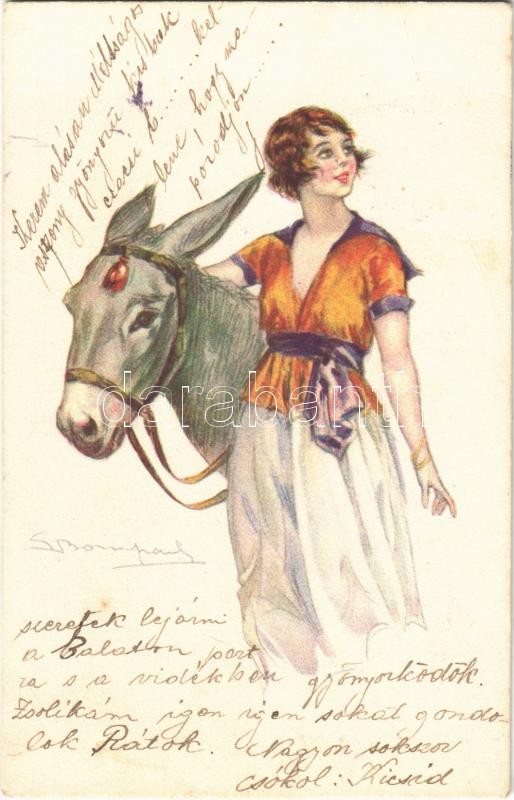1922 Italian lady art postcard, lady with mule. Proprietá Artistica ri... https://www.darabanth.com/de/489-Fernauktion/489.0/Ansichtskarten/Kunstlerkarten~1500041/1922-Italian-lady-art-postcard-lady-with-mule-Proprieta-Artistica-riservata-639-3-s-Bompard~II2407864