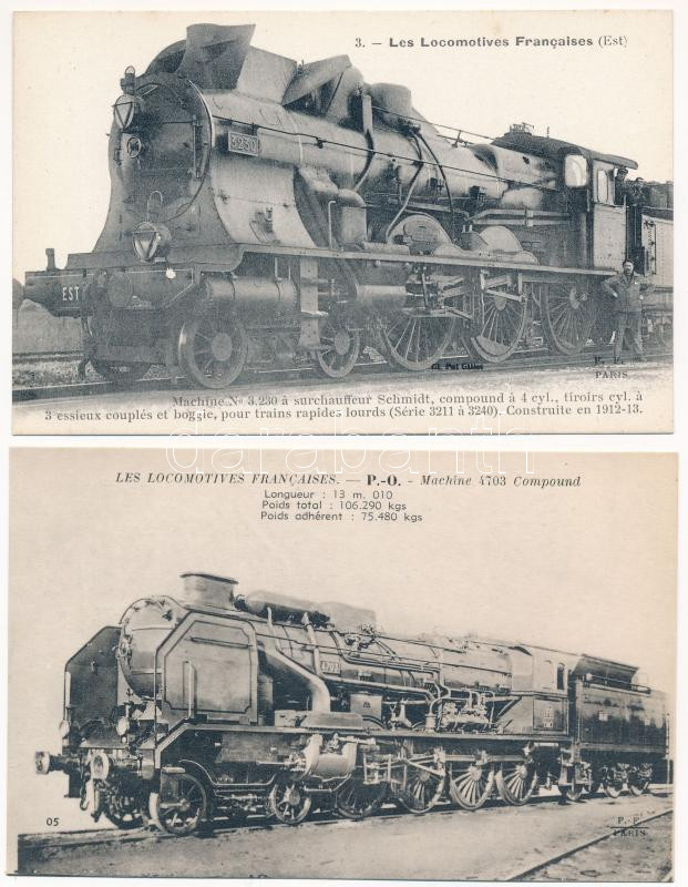 Beschreibung: Francia vasút, gőzmozdonyok, vonatok - 45 db régi használatlan képeslap / French Railways, locomotives, trains - 45 pre-1945 unused postcards
