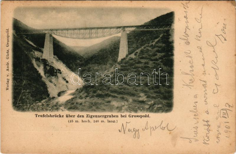 1901 Nagyapold, Grosspold, Apoldu de Sus; Ördög-vasúti híd a Cigány-ár... https://www.darabanth.com/de/489-Fernauktion/489.0/Ansichtskarten/Siebenburgen~1500006/1901-Nagyapold-Grosspold-Apoldu-de-Sus-Ordog-vasuti-hid-a-Cigany-arok-felett-gozmozdony-~II3244276