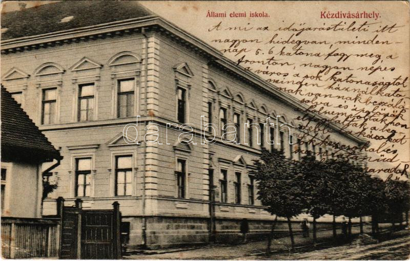Beschreibung: 1917 Kézdivásárhely, Targu Secuiesc; állami elemi iskola. Turóczi István kiadása / school (EK)