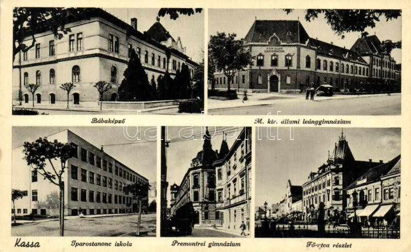Kassa, Kosice; Bábaképző, Állami leánygimnázium, Iparostanonc iskola, ... https://www.darabanth.com/de/489-Fernauktion/489.0/Ansichtskarten/Slowakei~1500007/Kassa-Kosice-Babakepzo-Allami-leanygimnazium-Iparostanonc-iskola-Premontrei-gimnazium-F~II1235311