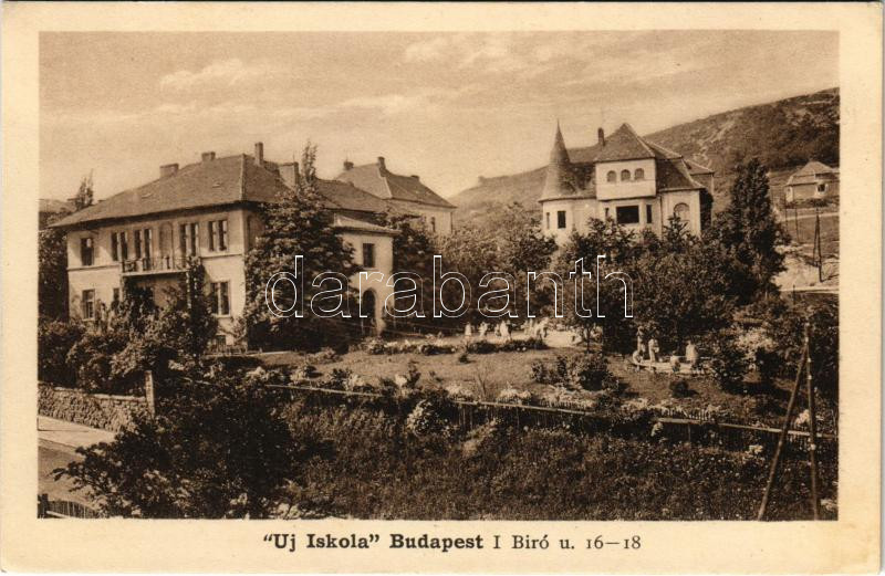 Beschreibung: Budapest XII. Ecole Nouvelle (Dir. Dr. Domokos) / Új iskola (1914-ben alapították) a Bíró utca 16-18. szám alatt (EK)