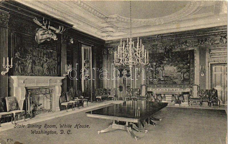 Washington, White House, State Dining Room, interior (EK) https://www.darabanth.com/de/489-Fernauktion/489.0/Ansichtskarten/Vereinigte-Staaten-von-Amerika~1500106/Washington-White-House-State-Dining-Room-interior-EK~II1055597