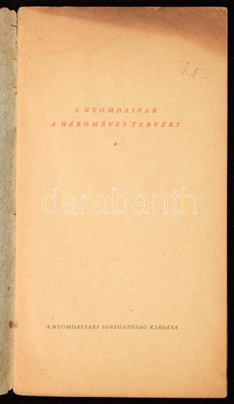 A nyomdaipar a hároméves tervért. Bp., 1948, Nyomdaipari Igazgatóság,(... https://www.darabanth.com/de/489-Fernauktion/489.0/Bucher/Bucher-Andere-kuriositaten~2000028/A-nyomdaipar-a-haromeves-tervert-Bp-1948-Nyomdaipari-Igazgatosag-Revai-ny-27-p-Kiado~II3250003